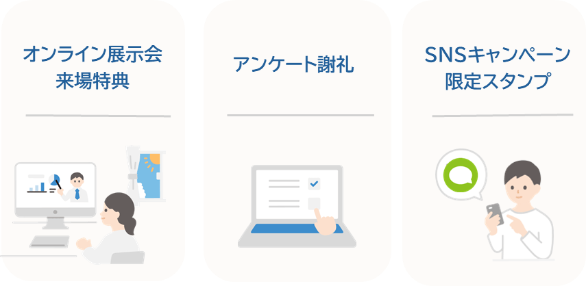 金額設定が柔軟で、少額から配布できることも企業側の使いやすさにつながります。申し込み特典やアンケートの謝礼、来場キャンペーンなど、目的を問わず幅広いシーンと相性が良く、即効性のある販促施策として多くの業種で採用されています。