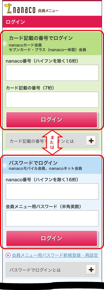 - ※登録したnanaco番号の訂正や取り消しはできませんので、ログイン情報に誤りのないようご注意ください。