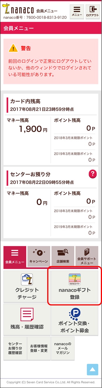 nanacoギフトのご利用方法