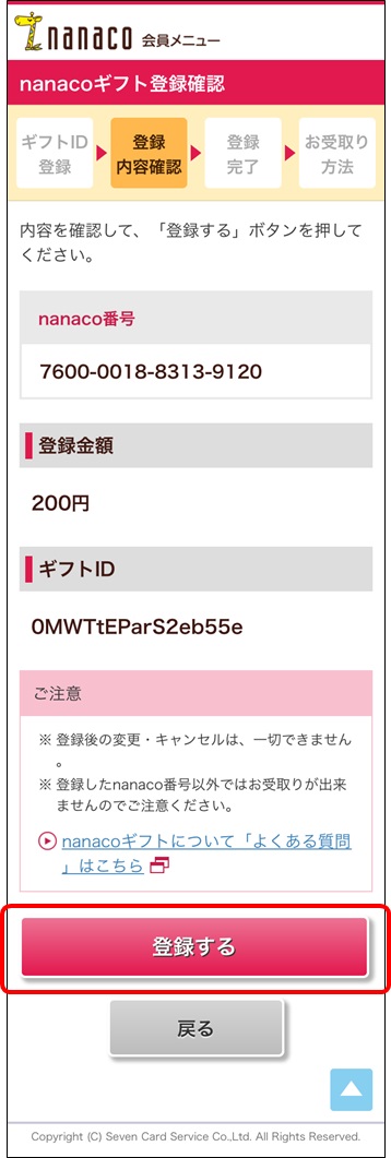 - STEP4 登録したnanacoギフトを受け取ります。